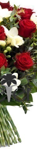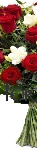 18 Red Roses, White Freesia