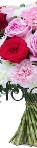 Cheerful and chic, the Rosy Posy Handtied Bouquet would make a lovely Get Well Soon gift. Adored for its timeless colour combination, it includes 6 pink roses, 3 red roses, 3 red gerberas, 3 white carnations, and white chrysanthemum sprays interspersed with fresh seasonal greenery. A lovely gift idea for milestone birthdays and Woman's day.