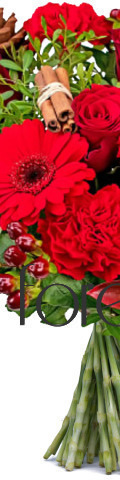 5 Red Roses, 5 Red Carnations, 2 Red Gerbera, Cinnamon Sticks, Pinecones